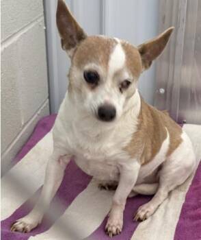 Panini, rescued along with nearly 100 other animals, this senior Chihuahua...