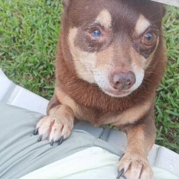 Age: Approximately 12 years Breed: Chihuahua Weight: 15 lbs Color: Chocolate brown and tan Background: Chocolate has had a tough...