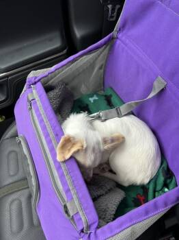 Paris is a true tiny princess, happy to be in a lap, being carried or running errands.