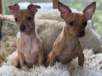 Betty and Sugar are a bonded pair of chihuahuas. They are so sweet and bond deeply. They are paper/pad trained....