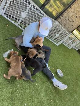 This adorable litter of 8 mixed-breed (embark results pictured) puppies came to our rescue after being abandoned in a box...