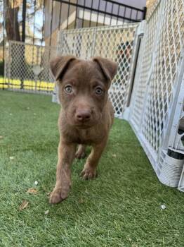 The chocolate Labrador Retriever is a beloved and popular breed known for its friendly demeanor, intelligence, and loyalty. These medium to large sized dogs have a strong build, a sleek chocolate coat, and expressive eyes. They excel in various roles such as hunting, service work, therapy, and as loving family pets. Chocolate Labs are energetic and playful, requiring regular exercise and mental stimulation to thrive. Their affectionate nature and willingness to please make them wonderful companions for both individuals and families alike.