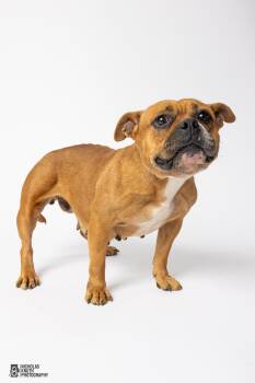The English Bulldog is a distinctive and beloved breed known for its sturdy build, wrinkled face, and gentle temperament. Originating in England, these dogs are characterized by their muscular frame, powerful jaw, and unique pushed in nose. Despite their tough appearance, English Bulldogs are affectionate, loyal, and great with children, making them excellent family pets. Due to their brachycephalic nature, they may struggle with overheating and breathing issues, requiring attentive care and moderate exercise to keep them healthy and happy.