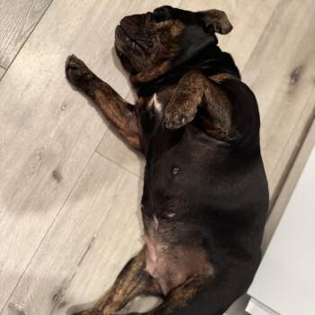 The English Bulldog is a distinctive and beloved breed known for its sturdy build, wrinkled face, and gentle temperament. Originating in England, these dogs are characterized by their muscular frame, powerful jaw, and unique pushed in nose. Despite their tough appearance, English Bulldogs are affectionate, loyal, and great with children, making them excellent family pets. Due to their brachycephalic nature, they may struggle with overheating and breathing issues, requiring attentive care and moderate exercise to keep them healthy and happy.