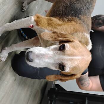43 lbs 7 years old Greyhound/Beagle mix