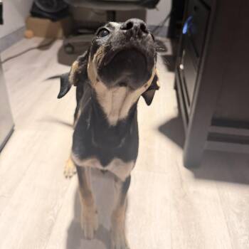 The German Pinscher is a medium sized dog breed known for its elegant appearance, intelligent nature, and high energy levels. Originating from Germany, these dogs are versatile working dogs with a strong prey drive, making them excellent hunters and watchdogs. Their distinctive short coat comes in various colors such as black and tan or red. German Pinschers are loyal, protective, and thrive on human companionship, making them ideal family pets for active and experienced dog owners.
