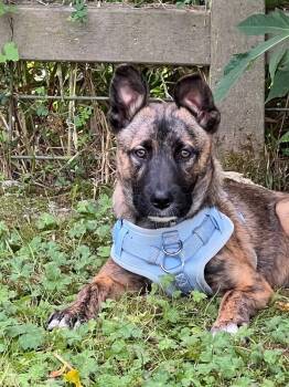 Quigley is a handsome mixed breed puppy with the most gorgeous brindle markings that make him truly stand...