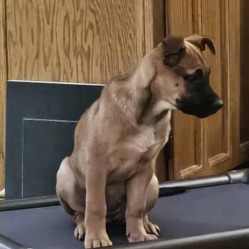 Frappe is light brown with a black muzzle!