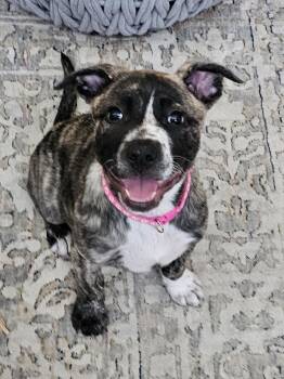 Hi there! I'm Emily! I'm a 9 week old, shepherd/bully mix, and I'm just too cute for words! I'll be...