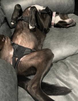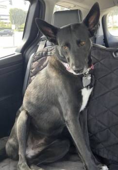 A bright and affectionate almost five-year-old German Shepherd/Terrier mix currently living in Huntington Beach, CA, whose glossy black...