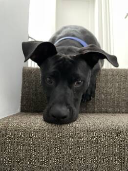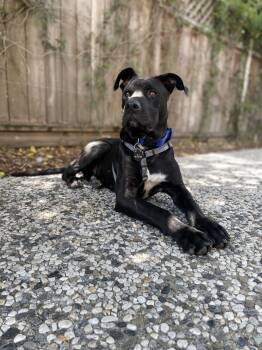 Meet Jet! A sweet 11 month old great dane/pittie mix who is looking for his furrever family!