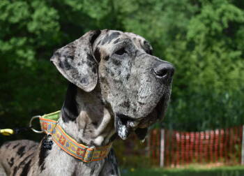 Meet Maple, a 2 yr old female Dane! Maple came to us when a volunteer working with animal control noticed...