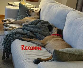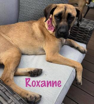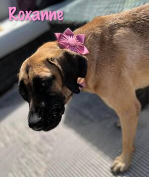 Roxanne is a 2 year-old, 50 lb mixed breed, possibly Hound, Black Mouth...