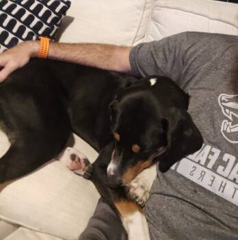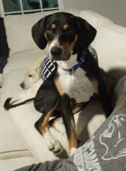 Say hello to Dunkin, a 10-month-old (roughly 40 pound) bundle of love and energy who's ready to find his forever...