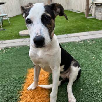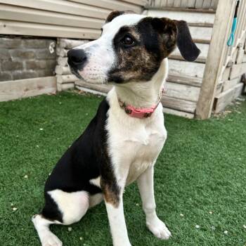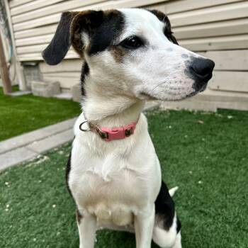 She's a 9-month-old potcake mix weighing in at 27 lbs...