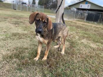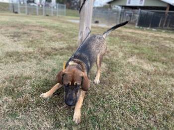 Bowser is a handsome male Hound dog with the characteristic hound ears.