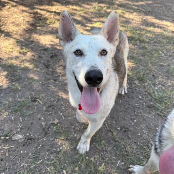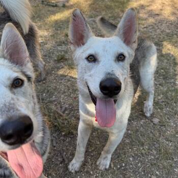 This handsome 8-month-old husky/shepherd mix tips the scales at about 30 pounds and has the perfect blend of...