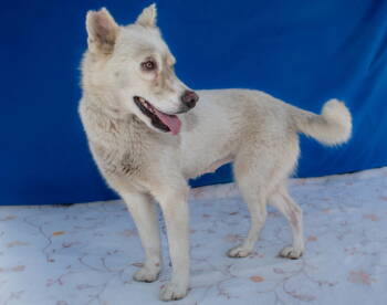 #A5732359 Meet Maachi , a 4-year-old Alaskan Husky girl who's a true diamond in the rough. Though her fluffy eggshell-white...
