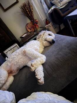 Sweet Snow is a one-year-old Doodle mix with the softest curls and an even softer...