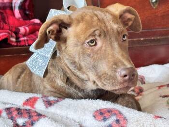 This adorable 10 week-old Lab/ American Bulldog is as handsome and sweet as they come. Rudolph’s journey hasn’t been easy...