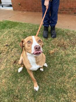Millie ? This silly girl is 1-2 years old, spayed, microchipped, and vaccinated. She is 39 pounds and done growing....