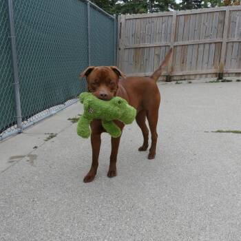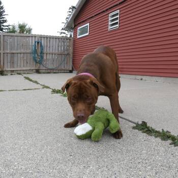 I'm a large chocolate lab and pit bull mix with the softest heart you'll ever meet!...