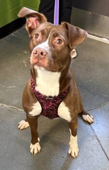 Primary Color: Brown Secondary Color: White Weight: 52lbs Age: 1yrs 4mths 1wks