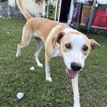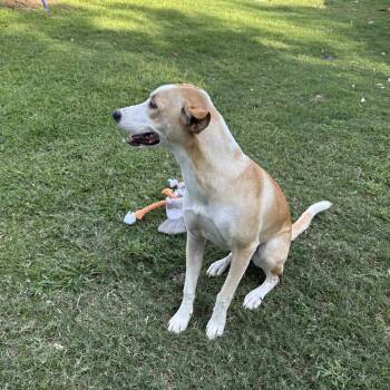 This 9-month-old Retriever mix weighs...