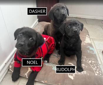 Meet Noel, our happy 9-week-old Lab mix pup (as of Nov 17th). She is cuddly, playful, sweet, smart, super friendly...