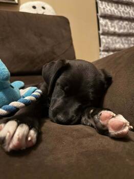 This 10 week old lab/terrier...