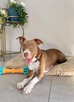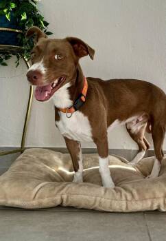?Finn is a lovable medium-size, Chocolate Lab, approximately a year old. He is friendly, playful but gentle...