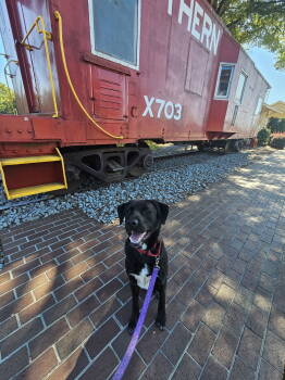 Blue Goose is the best dog! He's about 4 to 5 years old. He has amazing manners!! He walks great...