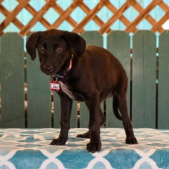 **AVAILABLE ONSITE STARTING THURSDAY 11/6 ** Jeneva is a beautiful, happy retriever mix puppy. She gets along well with dogs...