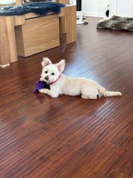 The West Highland White Terrier, commonly known as Westie, is a small but sturdy and confident dog breed originating from Scotland. Known for their distinctive white coats, Westies are friendly, alert, and spirited companions. With their playful nature and strong hunting instincts, they make excellent family pets. Their compact size, low shedding, and loving personality make them popular choices for both city dwellers and country homes. West Highland White Terriers thrive on human companionship and are adaptable to various living environments.