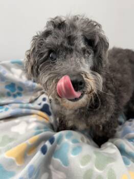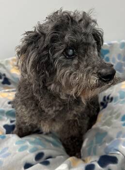 Sweet old man Franklin is a senior Miniature Poodle (10.8 lbs and approximately twelve years old) with a soft black...
