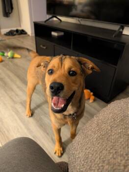 This pup has the cutest wrinkly forehead! Frisco is a 6-month-old mystery mix weighing 35 pounds. Whatever his mix is,...