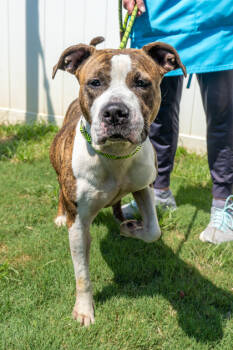Beautiful, brindle, July Jones is the master of poses, just check out her classic bird dog point! July walks well...