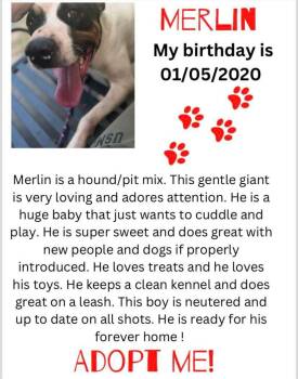 Merlin is smart and keeps his kennel clean, he is a big cuddle bug and does well with kids and...