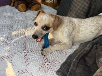 Meet Freckles — the snuggly, playful pup with a heart full of love and a dash of puppy mischief!