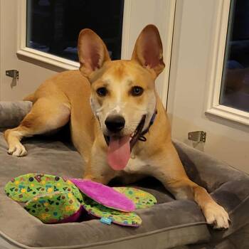 Ozzie is about a year and a half old and weighs around 55-60 lbs. He's a charming guy...