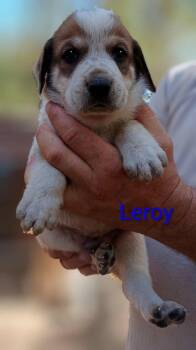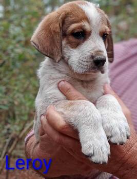 This sweet houndy pup is just about 8 weeks old and ready to find a furever home! Mama is blue...