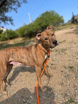 Hi, I'm Selena! I'm around 2 years old, 50lbs, and a Mountain Cur mix. I am a very sweet girl...