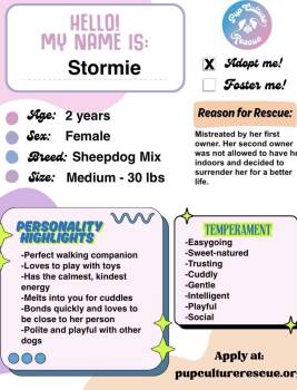 Stormy weather? More like Stormie weather! Sweet, adorable, and adoption-ready!