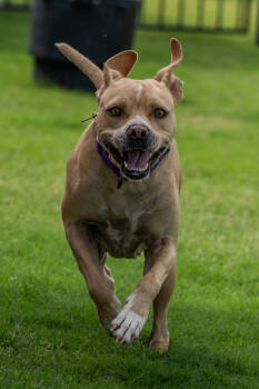 The American Staffordshire Terrier, also known as the Amstaff, is a medium sized, muscular breed known for its loyalty and courage. Developed in the United States, they are intelligent and affectionate dogs, making them great family companions. With a distinctive short coat and strong build, American Staffordshire Terriers are often misunderstood due to their past as fighting dogs, but they are actually loving and playful pets when raised in a nurturing environment. They thrive on human interaction and are eager to please their owners.