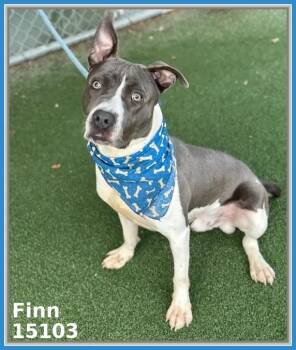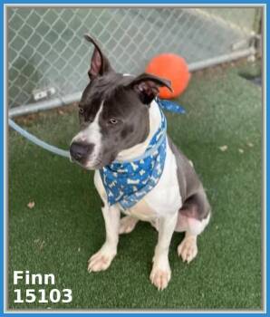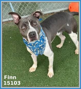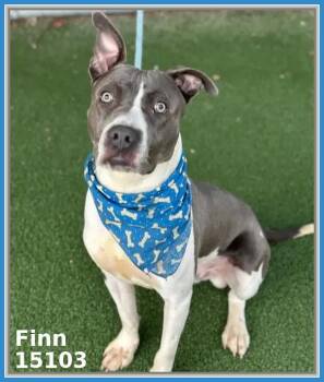 Finn – ID 15103 – Kennel 55 – 2-year-old grey and white American Pit Bull Terrier mix – Male –...