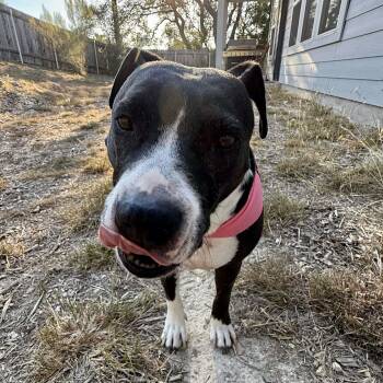 Meet Roxie, a beautiful 58-pound pittie mix whose heart is as big as her goofy grin!