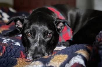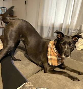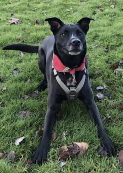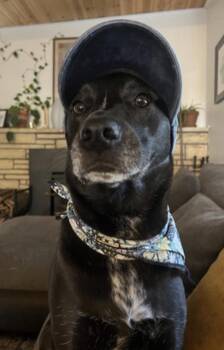 A loving six-and-a-half-year-old American Pitbull Terrier mix from Kent, WA, whose soulful eyes and velvety black coat are...