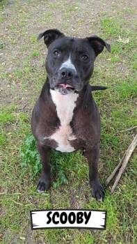 Scooby is looking pretty handsome in his new bandana. He enjoys attention, and is good with people and other dogs....