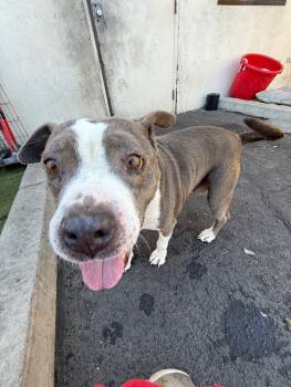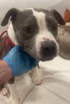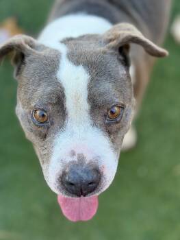 Lucy is a 7-year-old gray and white Pitbull mix who weighs about 43 pounds. This sweet girl has...