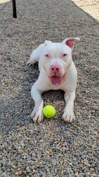 Super friendly, loving! He is completely deaf, but trained to hand signals,...
